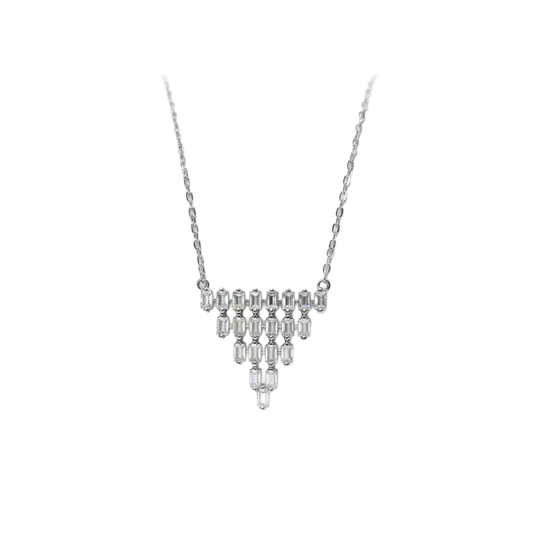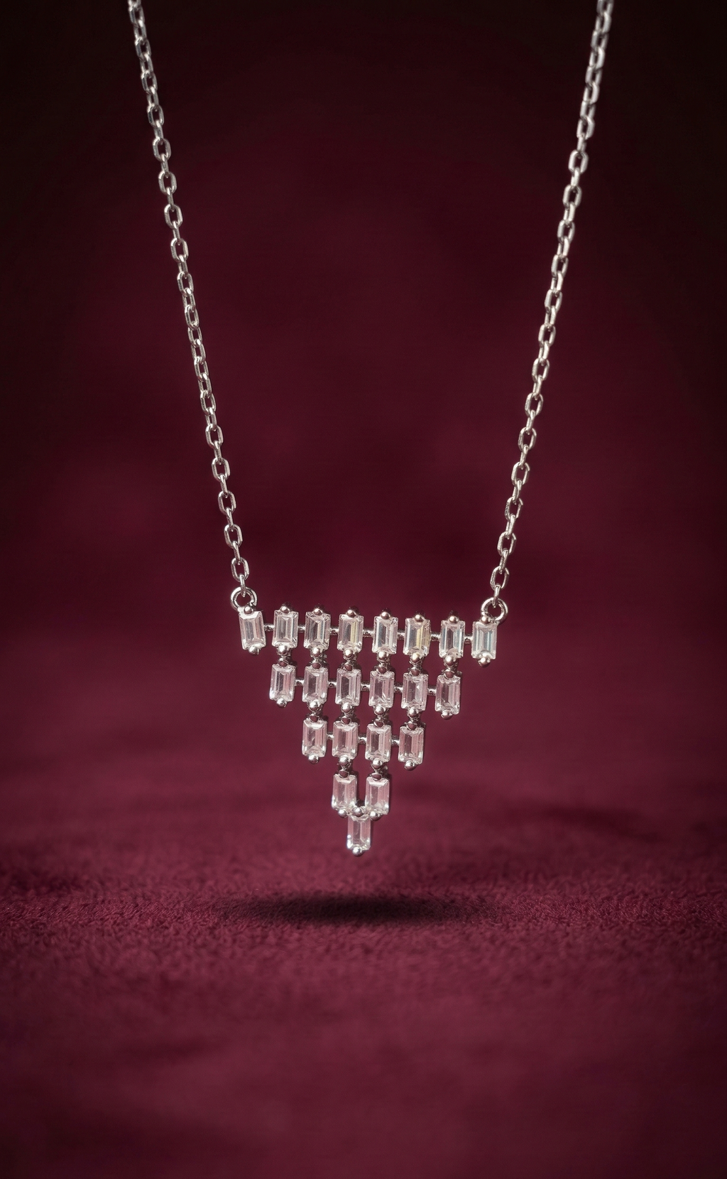 Add a modern sparkle to your jewelry collection with this elegant Geometric Crystal Drop Necklace. Designed with beautifully arranged baguette-cut crystals forming a stylish triangular drop pattern, this necklace creates a sophisticated and eye-catching look....