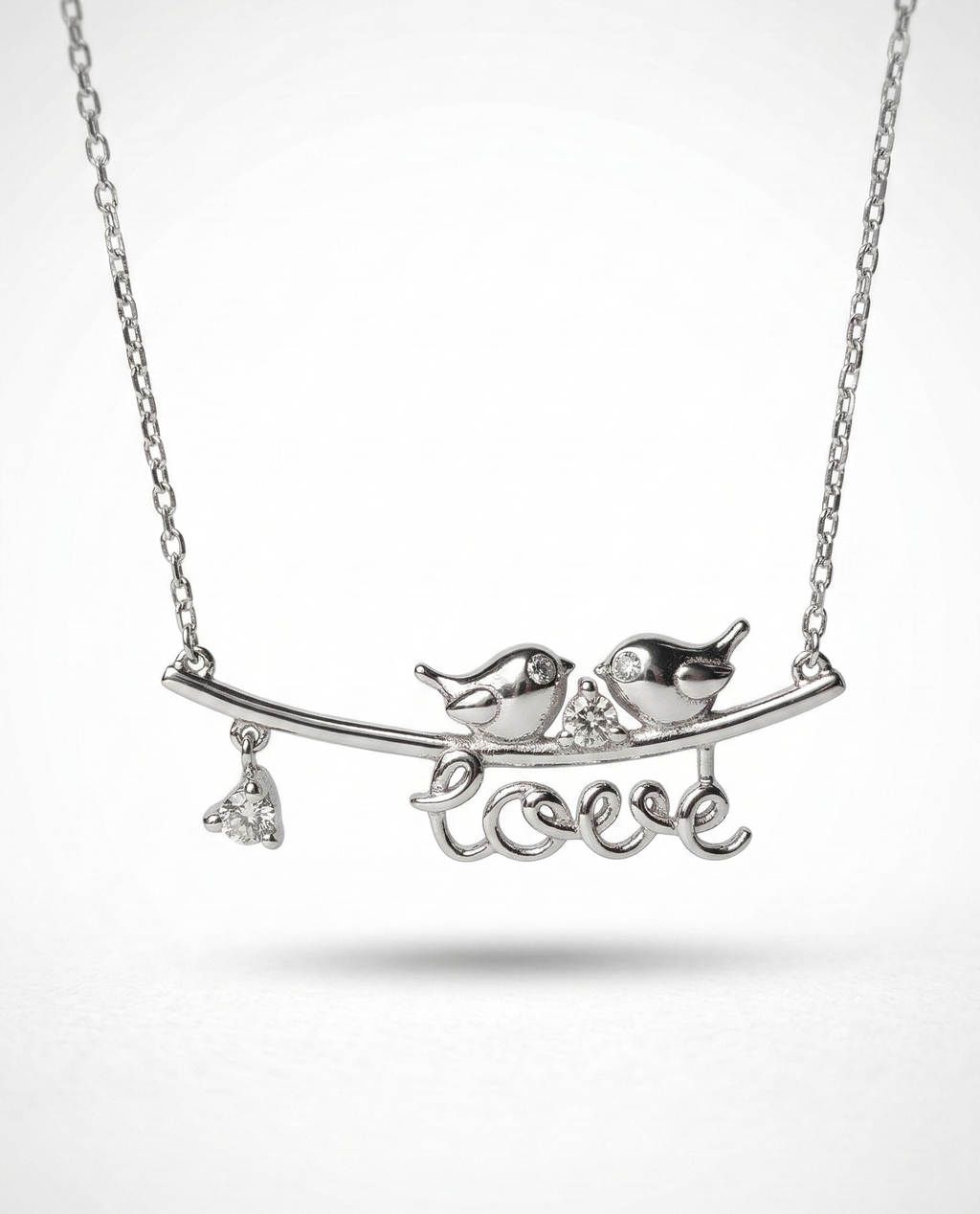 Express love and affection with this beautiful Love Birds Crystal Necklace, a symbol of romance, connection, and togetherness. The pendant features two adorable birds sitting on a branch with the word “Love” elegantly designed below,...